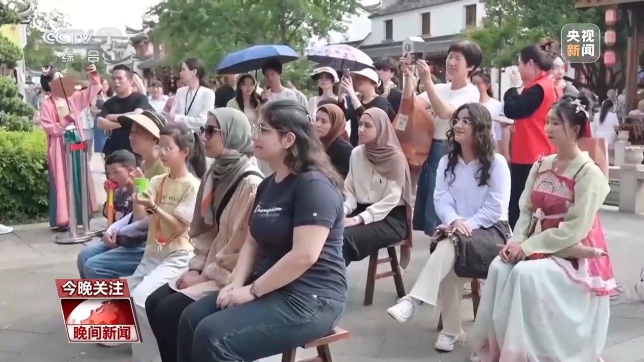 除了購物游,古鎮游也正在被不少外籍旅客納入行程。他們穿梭在古鎮中,或是裝扮成婺劇中的花旦,體驗戲曲的魅力,或是跟著老師敲打、上墨,感受中國的非遺之美。