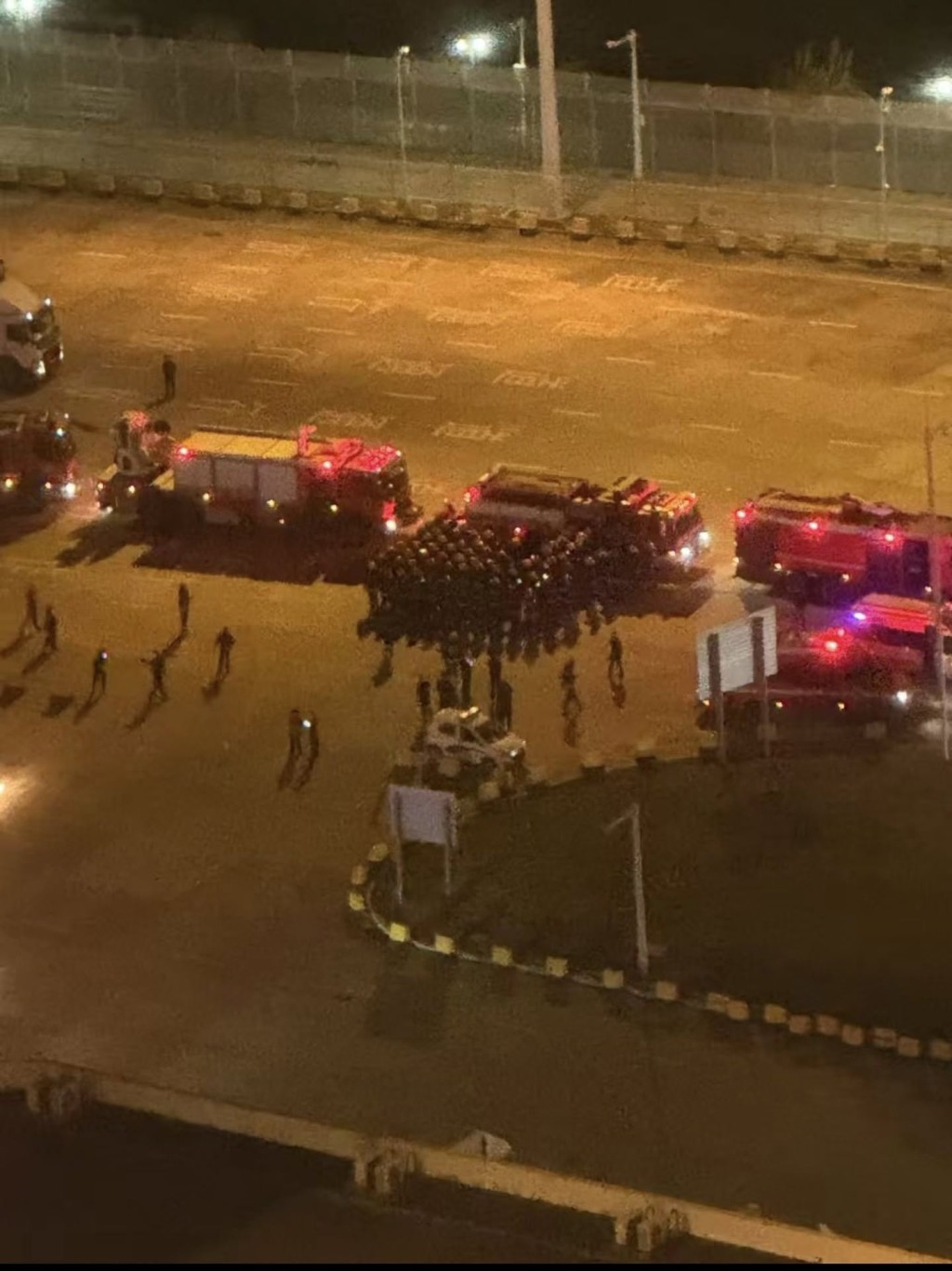 網民拍攝到大批深圳消防在蓮塘口岸外集結,疑準備來港協助求火。